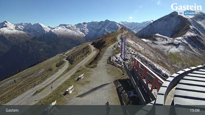 Die Webcam blickt von der Südseite der Bergstation am Stubnerkogel auf die umliegende Bergwelt von Bad Gastein.