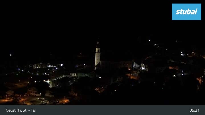 Die Webcam blickt auf den kleinen Ort Neustift im Stubaital.