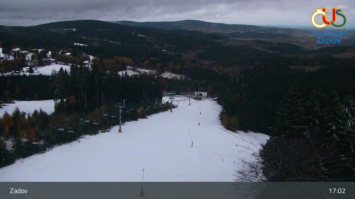 Hier blickst du auf das Wintersportgebiet Zadov-Churanov. Es befindet sich in Tschechien an der Grenze zum Nationalpark Böhmerwald.