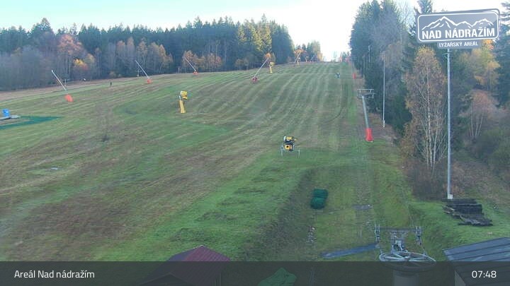 Die Webcam zeigt die Skilifte im Areal Nad nádražím bei Železná Ruda nahe der deutschen Grenze.