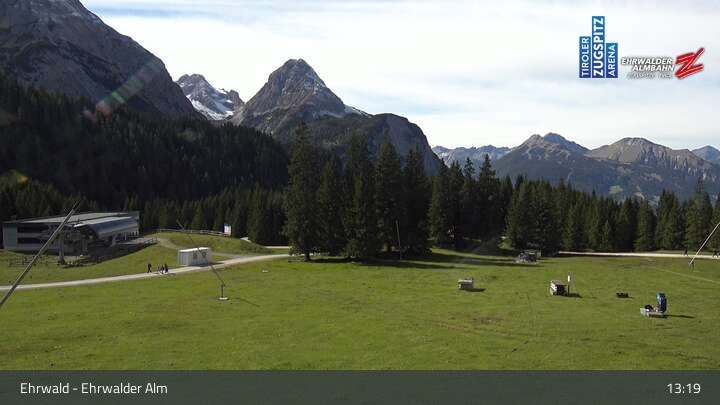Webcam Sicht auf das Kinderland an der Ehrwalder Alm, 1,491 m