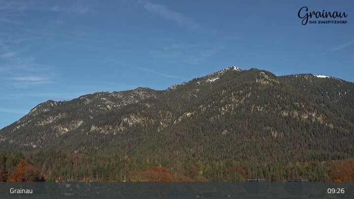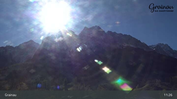 Die Live-Webcam zeigt vom Freibad aus einen Rundumblick auf das Bergdorf Grainau und seine Umgebung. Zu sehen sind unter anderem die Zugspitze, der große und kleine Waxenstein sowie der Hohe Ziegspitz.