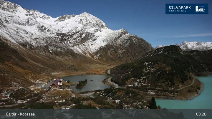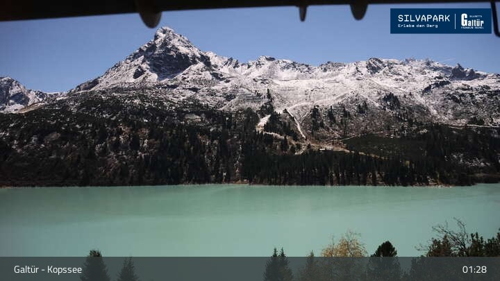 Hier siehst du den Stausee Kops in Galtür, der in den österreichischen Alpen im Bundesland Vorarlberg in der Silvretta-Gruppe liegt.