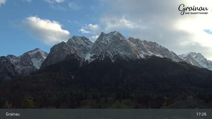 Die Live-Webcam zeigt vom Freibad aus einen Rundumblick auf das Bergdorf Grainau und seine Umgebung. Zu sehen sind unter anderem die Zugspitze, der große und kleine Waxenstein sowie der Hohe Ziegspitz.
