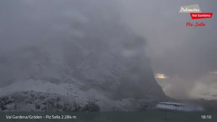 Ausblick von der Bergstation am Piz Sella in Val Gardena in Südirol. Zu sehen sind u.a. der Langkofel und die Sellagrupee.