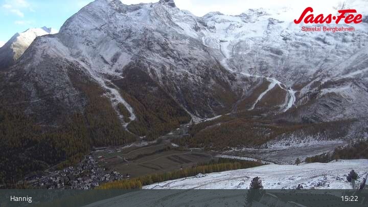 Die Webcam eröffnet einen schönen Ausblick von der Bergstation Hannig über Saas-Fee im Schweizer Kanton Wallis.