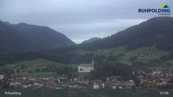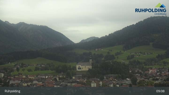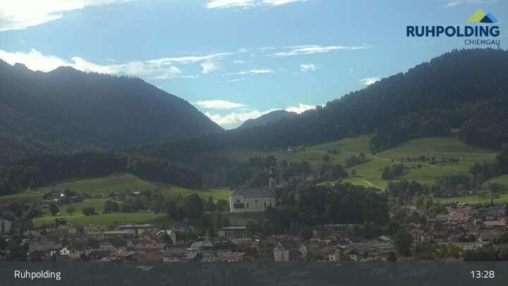 Webcam Panorama Ruhpolding: Ort und Berge, 696 m