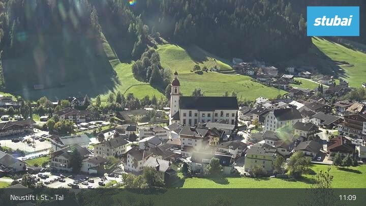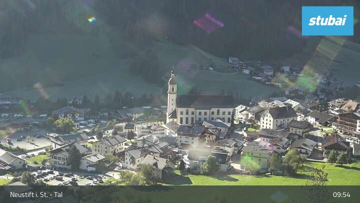 Die Webcam blickt auf den kleinen Ort Neustift im Stubaital.