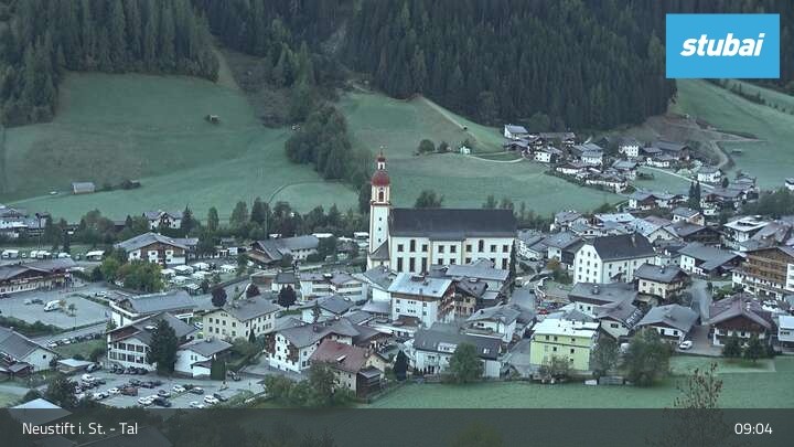 Die Webcam blickt auf den kleinen Ort Neustift im Stubaital.