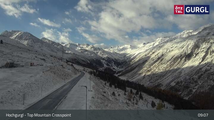 Hier blickst du auf den Top Mountain Crosspoint bei Hochgurgl im Tiroler Ötztal. Es handelt sich dabei um die Mautstation zur Timmelsjocher Hochalpenstraße. In dem Gebäude befindet sich unter anderem auch das höchste Motorradmuseum der Welt.