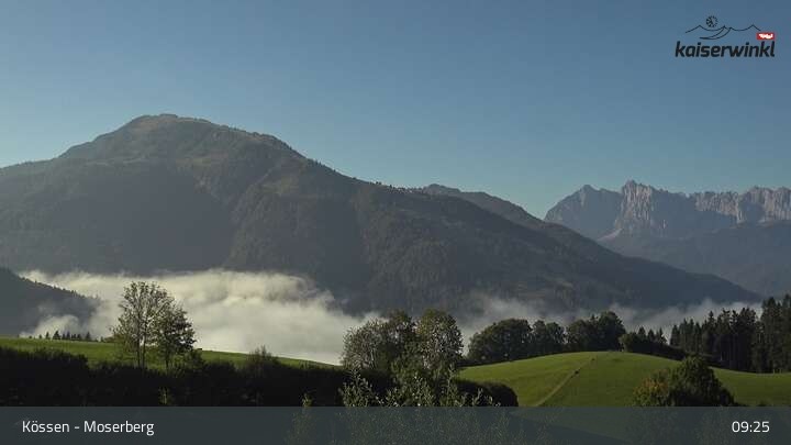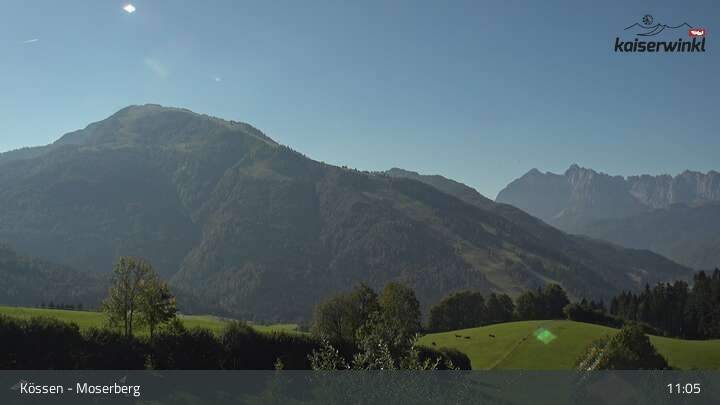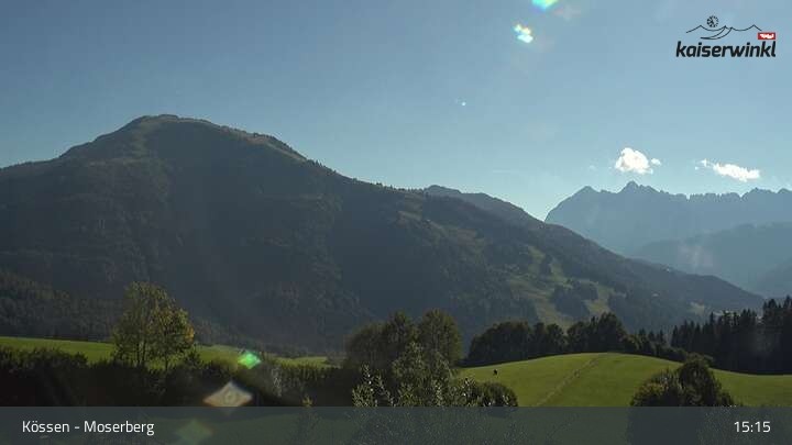 Die Webcam auf dem Moserberg in Kössen blickt auf die umliegende Alpenwelt.