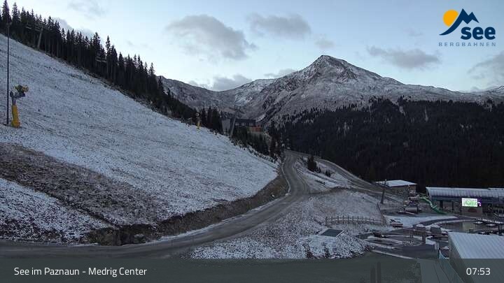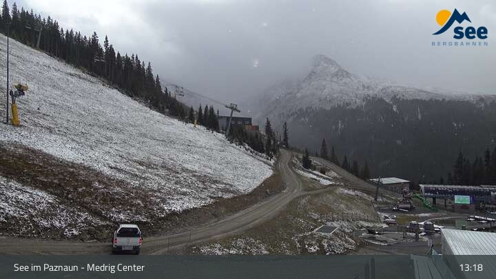 Die Webcam in See eröffnet den Blick vom Medrig Center auf rund 1.800 Metern auf die Bergstation der Medrigjoch-Gondelbahn.