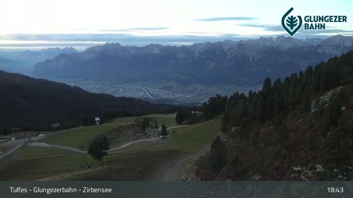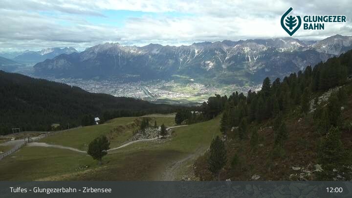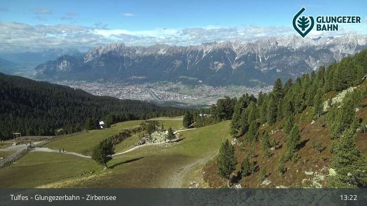Die Webcam ermöglicht einen tollen Panoramablick auf die Landschaft am Glungezer. Das Bild wird unweit des Zirbensees aufgenommen.