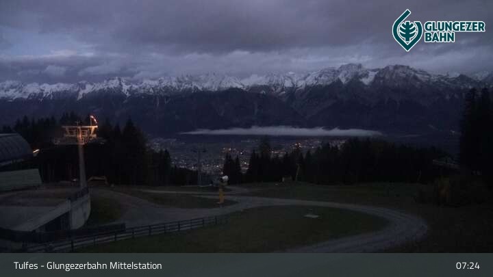 Webcam Tulfes: Blick von der Mittelstation am Glungezer, 1,553 m