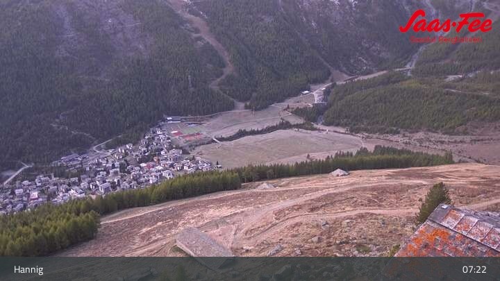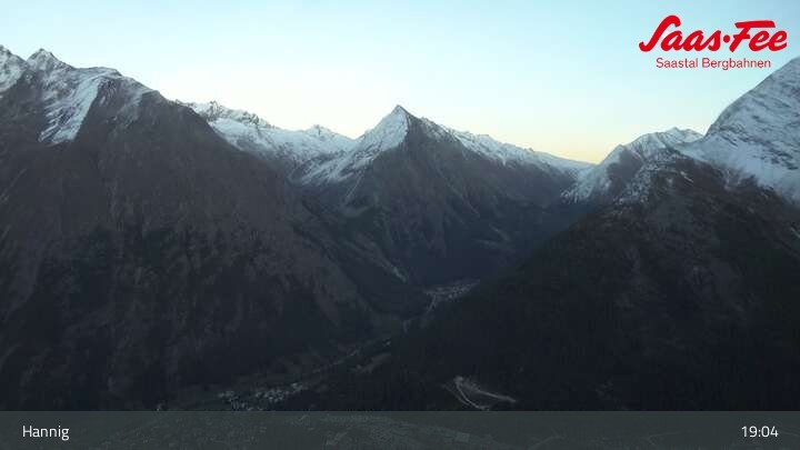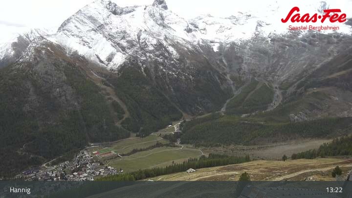 Die Webcam eröffnet einen schönen Ausblick von der Bergstation Hannig über Saas-Fee im Schweizer Kanton Wallis.