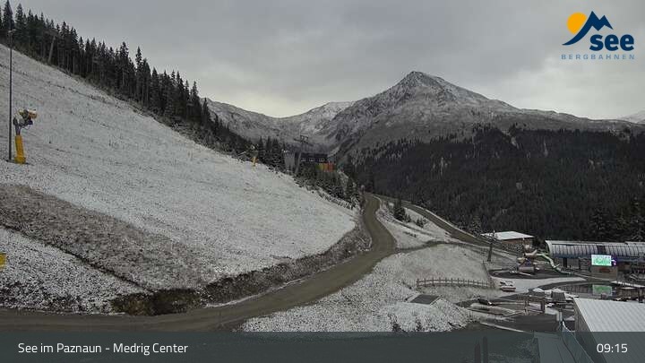 Die Webcam in See eröffnet den Blick vom Medrig Center auf rund 1.800 Metern auf die Bergstation der Medrigjoch-Gondelbahn.