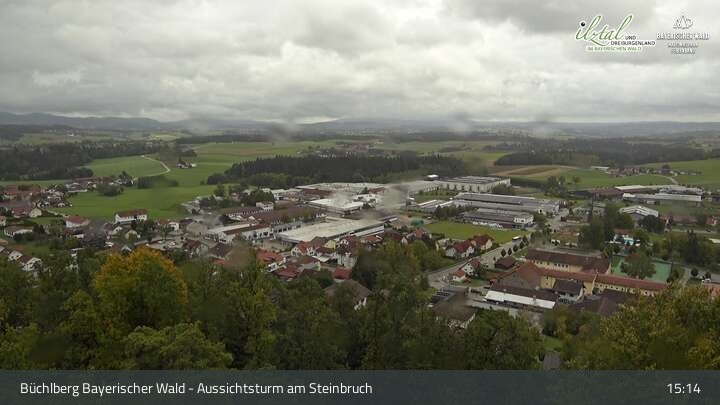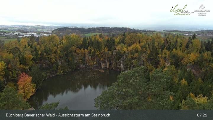 Webcam Büchlberg und Steinbruchsee vom Aussichtsturm, 527 m