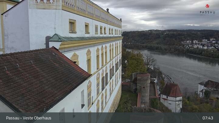 Die Webcam zeigt einen tollen Panoramablick von der Veste Oberhaus auf die Donau und die Altstadt von Passau. Neber der herrschaftlichen Burgfassade sieht man sehr gut die Landzunge zwischen Donau und Inn, auf der die Altstadt mit ihren denkmalgeschützten Häusern liegt. Gut zu erkennen sind unter anderem die Ortspitze am Zusammenfluss der drei Flüsse, das an der Donau liegende Rathaus, der weiße Dom St. Stephan und das erhöhte Kloster Mariahilf in der Innstadt.