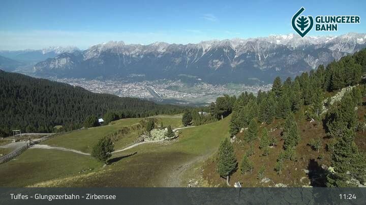 Die Webcam ermöglicht einen tollen Panoramablick auf die Landschaft am Glungezer. Das Bild wird unweit des Zirbensees aufgenommen.