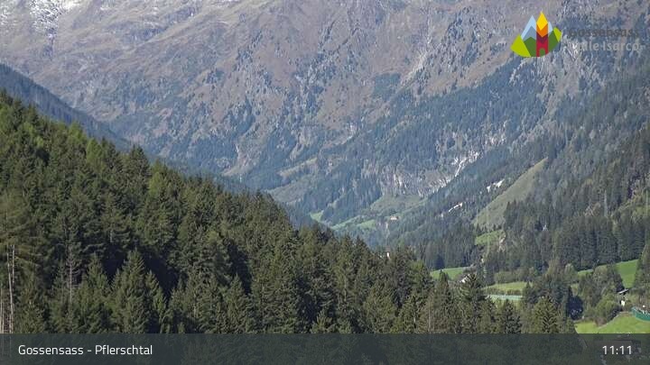 Die Kamera zeigt die Kirche Parrocchia San Valentino in Gossensass im Eisacktal.