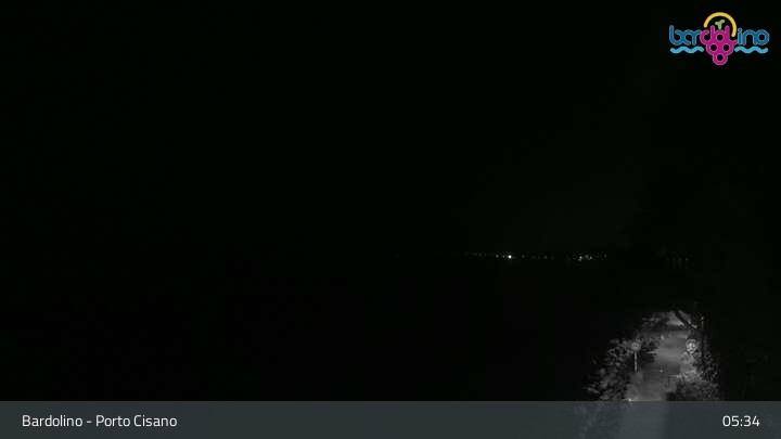 Die Kamera befindet sich am Strand Lido Mirabello und blickt nach Norden auf den Hafen von Bardolino am Gardasee.