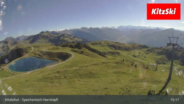 Die Webcam befindet sich auf rund 1.700 m Höhe und blickt auf den Speicherteich Hornköpfl sowie die Kitzbüheler Alpenwelt.
