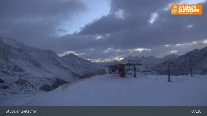 Webcam Stubaier Gletscher: Aublick Bergstation Murmele, 2,672 m