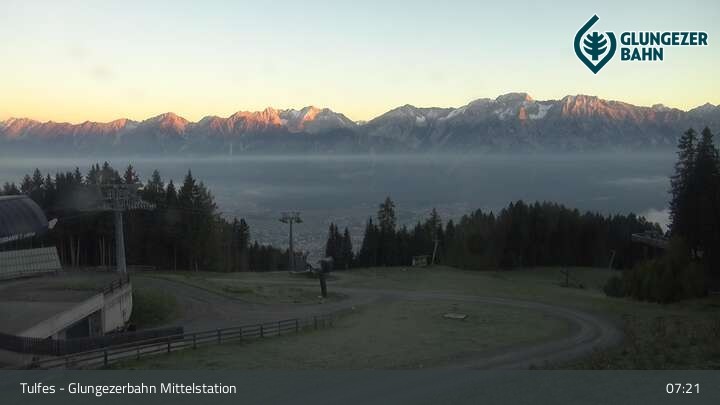 Webcam Tulfes: Blick von der Mittelstation am Glungezer, 1,553 m
