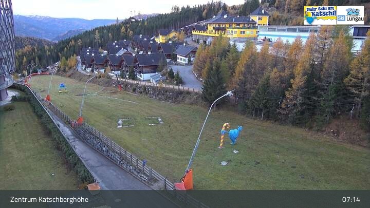 Vom Zentrum Katschberghöhe blickt die Webcam auf die umliegenden Berge.