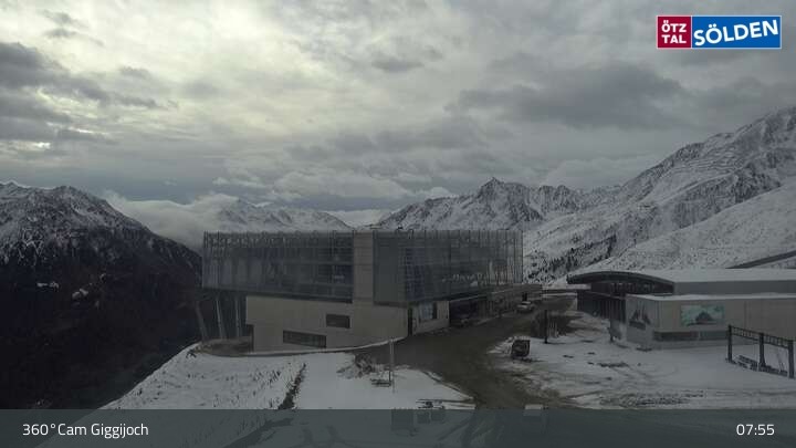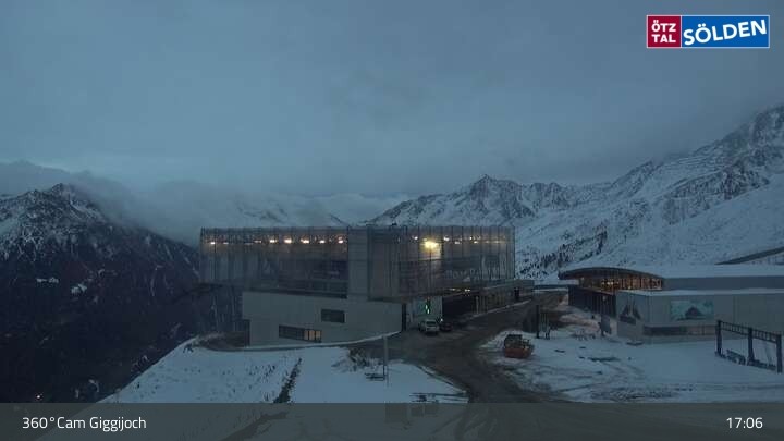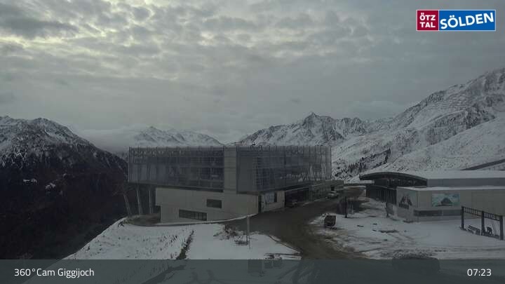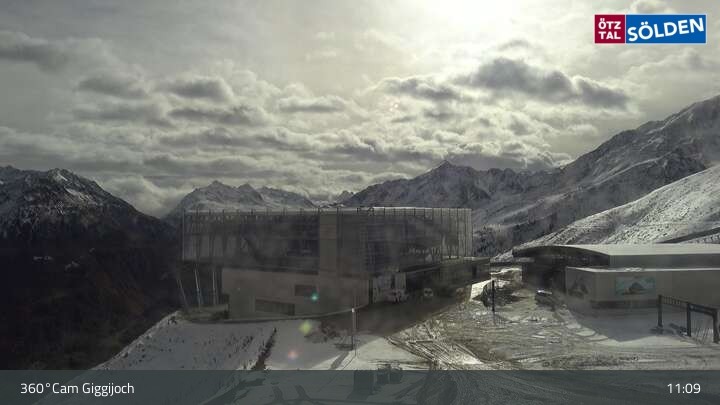 Blick vom Giggijoch auf die Bergbahnen sowie die umliegendeAlpenwelt von Sölden.