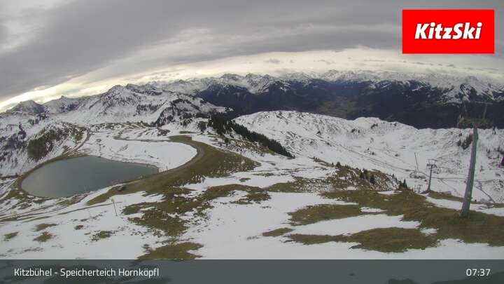 Die Webcam befindet sich auf rund 1.700 m Höhe und blickt auf den Speicherteich Hornköpfl sowie die Kitzbüheler Alpenwelt.