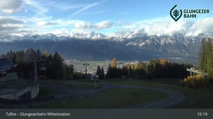 Webcam Tulfes: Blick von der Mittelstation am Glungezer, 1,553 m