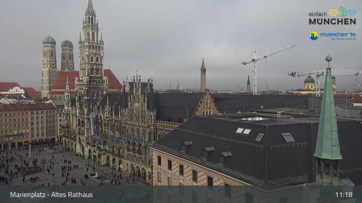 Die Webcam blickt vom Alten Rathaus auf den Marienplatz, der zentrale Platz der Münchener Innenstadt.