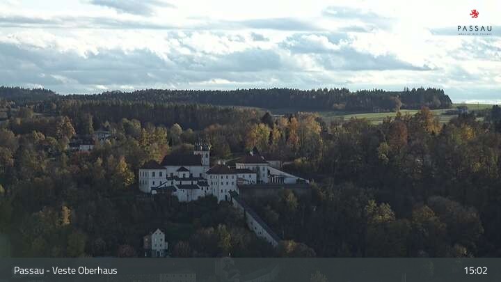 Die Webcam zeigt dir den Blick von der Veste Oberhaus über die Donau zur Altstadt der niederbayerischen Stadt Passau. Sehr gut zu erkennen sind links Teile der Burgveste, die Ortspitze wo die drei Flüsse Donau, Inn und Ilz zusammenfließen, die Hängebrücke über die Donau und rechts der weiße Stephansdom.