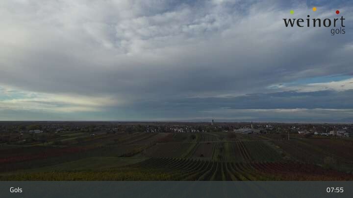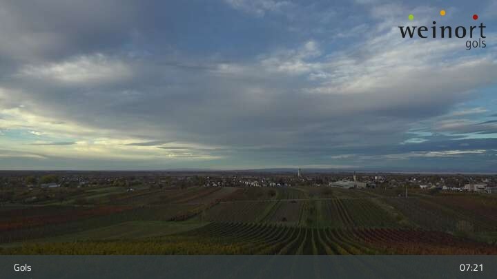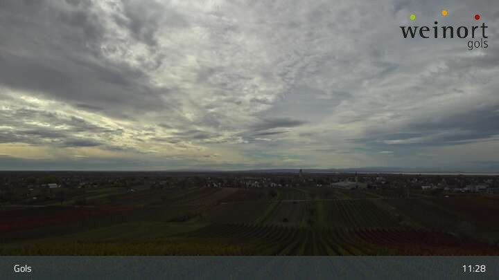 Über die Weinberge hinweg blickt die Webcam auf den Ort Gols im Burgenland.