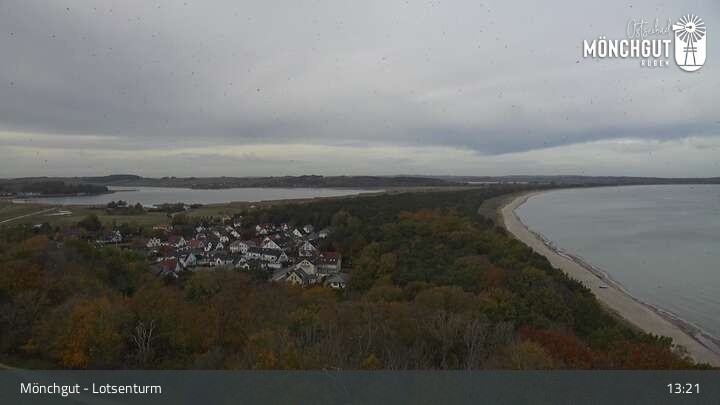 Die Webcam ist am Lotsenturm bei Thiessow positioniert und zeigt den Blick auf die Halbinsel Mönchgut, die zu Rügen gehört und an der Ostsee liegt.