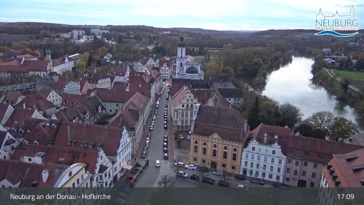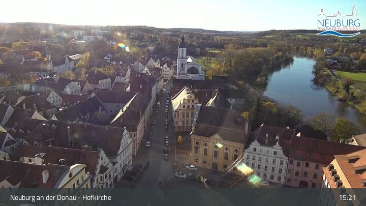 Die Webcam befindet sich an der Hofkirche in Neuburg an der Donau und blickt über den Karlsplatz bis zum Residenzschloss.
