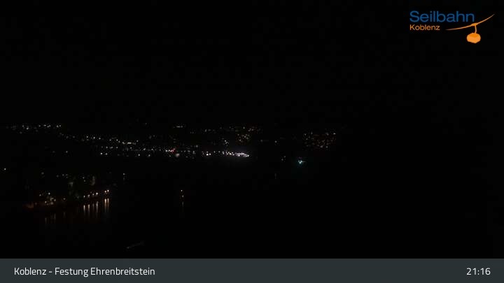 Webcam Koblenz: Blick von der Festung auf Seilbahn und Deutsches Eck, 160 m
