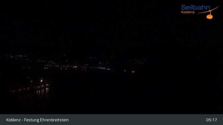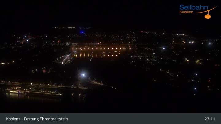 Webcam Koblenz: Blick von der Festung auf Seilbahn und Deutsches Eck, 160 m