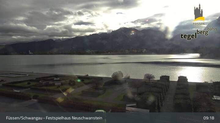Die Webcam blickt auf den Garten von Ludwigs Festspielhaus in Füssen am Forggensee.
