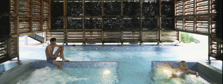 Die Therme verteilt sich auf einen Innen- und einen Außenbereich, die beide die Themen Salz & Sole immer wieder aufgreifen. So gibt es drinnen ein großes Solebecken (34 Grad warm) und einen Sole-Whirlpool (35 Grad). Großes Highlight draußen ist neben dem im Frühsommer 2017 neu gestalteten Außenbecken vor allem der „Lazy River“. Der Outdoor-Fluss ist in dieser Form wohl einzigartig in Österreich. In einer leichten Strömung können sich die Badegäste zu insgesamt vier Wellness-Stationen treiben lassen. In einer Salzgrotte warten Massagesitze und beleuchtete Onyx-Steine, auf Sprudelliegen kannst du die Aussicht auf die Bergwelt von Bad Ischl genießen, im Gradierwerk sorgen Sprudeldüsen für angenehmes Kribbeln und zum Abschluss heißt es Relaxen im Liegebereich mit Kiesstrand. Aber auch im restlichen Bereich der Therme gibt es drinnen und draußen zahlreiche Liegen zum Erholen.