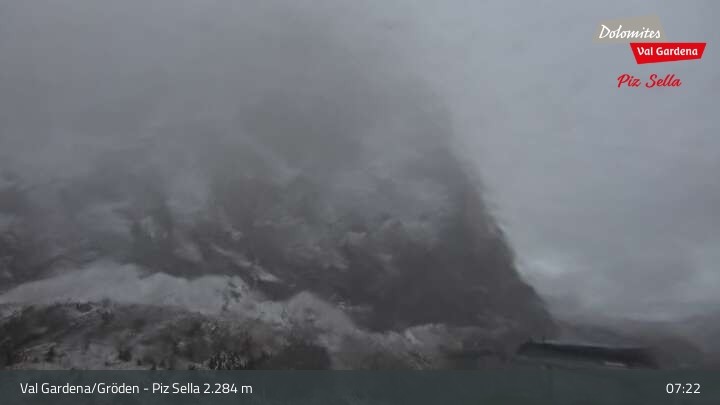 Ausblick von der Bergstation am Piz Sella in Val Gardena in Südirol. Zu sehen sind u.a. der Langkofel und die Sellagrupee.