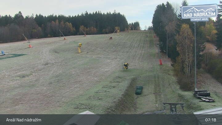 Die Webcam zeigt die Skilifte im Areal Nad nádražím bei Železná Ruda nahe der deutschen Grenze.