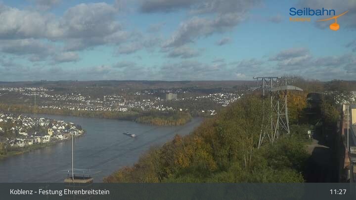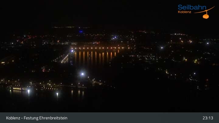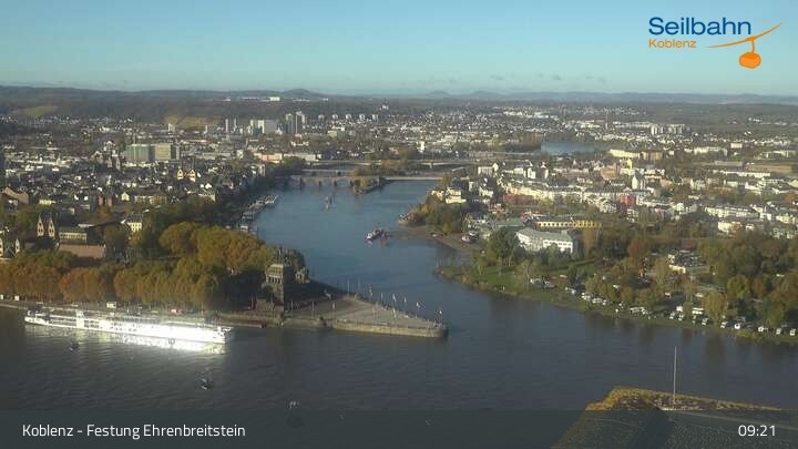 Webcam Koblenz: Blick von der Festung auf Seilbahn und Deutsches Eck, 160 m