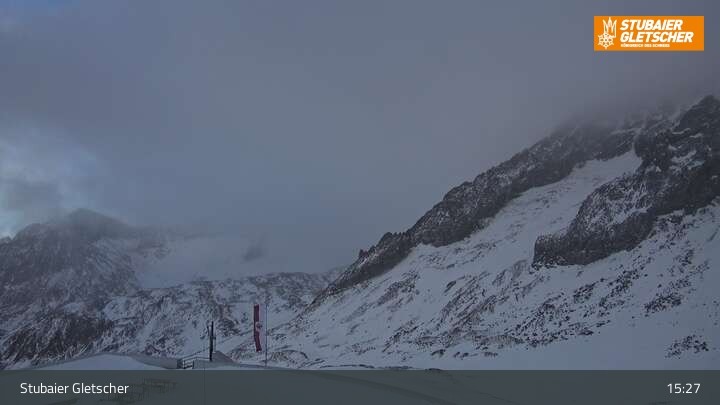 Die Kamera befindet sich an der Bergstation der Eisgrat Gondel am Stubaier Gletscher.