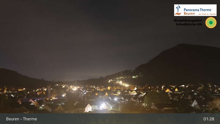 Blick über Beuren in der Schwäbischen Alb. Die Webcam befindet sich in der Panorama Therme Beuren.