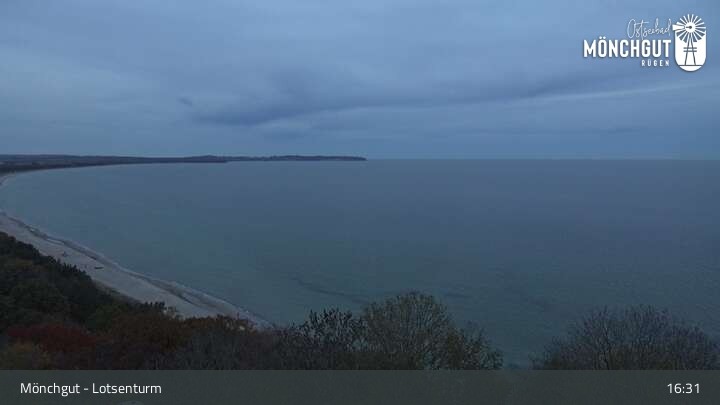 Die Webcam ist am Lotsenturm bei Thiessow positioniert und zeigt den Blick auf die Halbinsel Mönchgut, die zu Rügen gehört und an der Ostsee liegt.